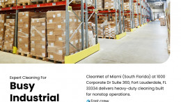 We provide industrial warehouse cleaning services across South Florida, focusing on safety, productivity, and compliance. Our team delivers dust control, floor care, high-dusting, equipment cleaning, restroom care, and disinfection services. We tailor solutions to each facility to maintain a clean and efficient working environment. Our services support smooth warehouse operations across South Florida region.